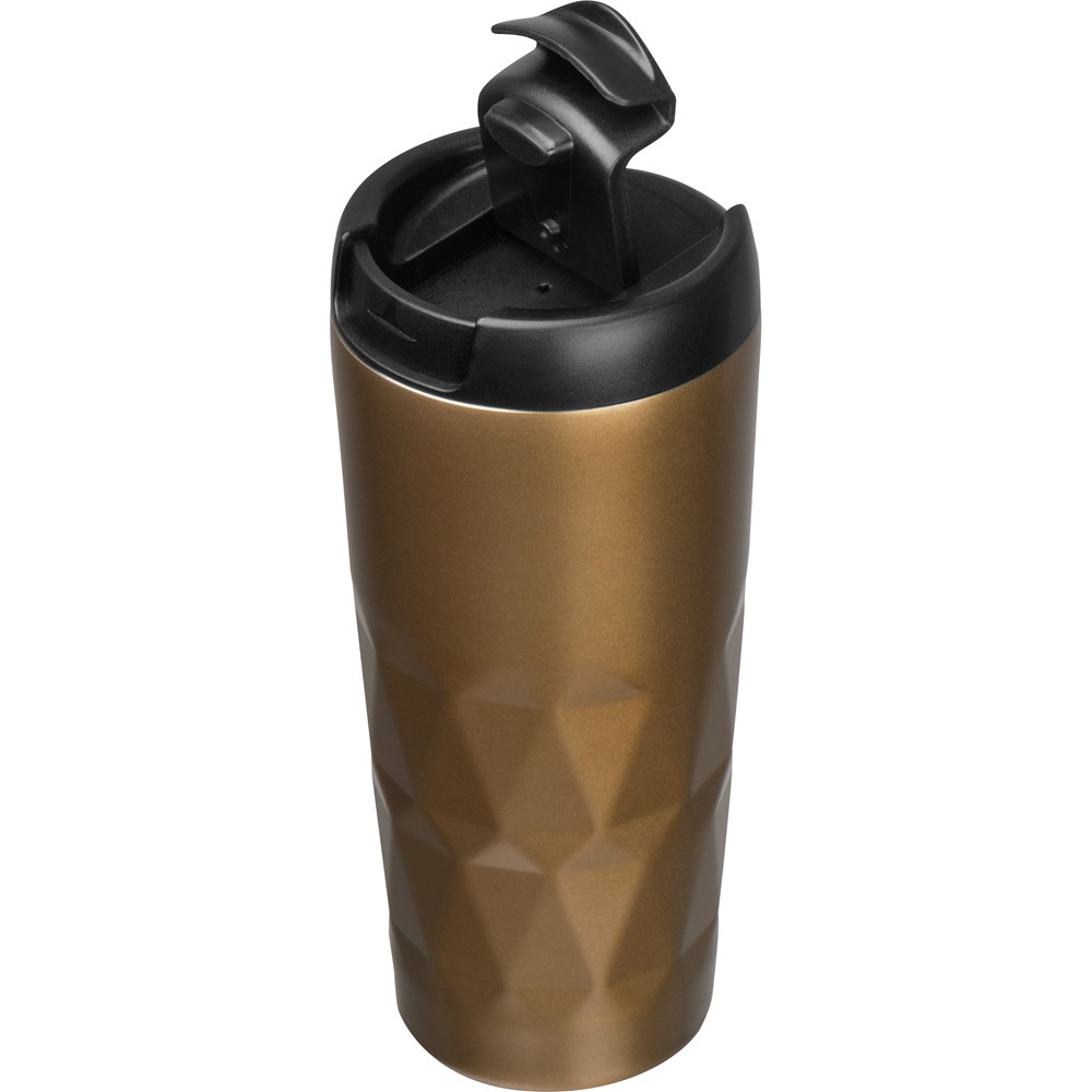 Doppelwandiger (VACUUM), auslaufsicherer Thermobecher aus Edelstahl mit einem Fassungsvolumen von 500 ml. Ihre Werbung wird direkt auf den Becher gelasert und erscheint in silber.