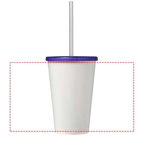 Doppelwandiger Isolierbecher. Die äußere Schicht des Bechers ist aus recyceltem Kunststoff hergestellt. Der Becher verfügt über ein vollfarbiges, umlaufendes In-Mould-Label Design, das an das Produkt angepasst ist – für Strapazierfähigkeit und Haltbarkeit. Lieferung mit PE-Strohhalm. Das Fassungsvermögen beträgt 350 ml. Hergestellt in Großbritannien. Verpackt in einem kompostierbaren Beutel. BPA-frei und spülmaschinenfest.