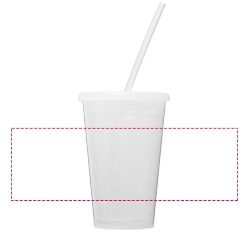 Doppelwandiger, lichtdurchlässiger Isolierbecher. Lieferung mit PE-Strohhalm. Das Fassungsvermögen beträgt 350 ml. Hergestellt in Großbritannien. EN12875-1 - konform und spülmaschinengeeignet.
