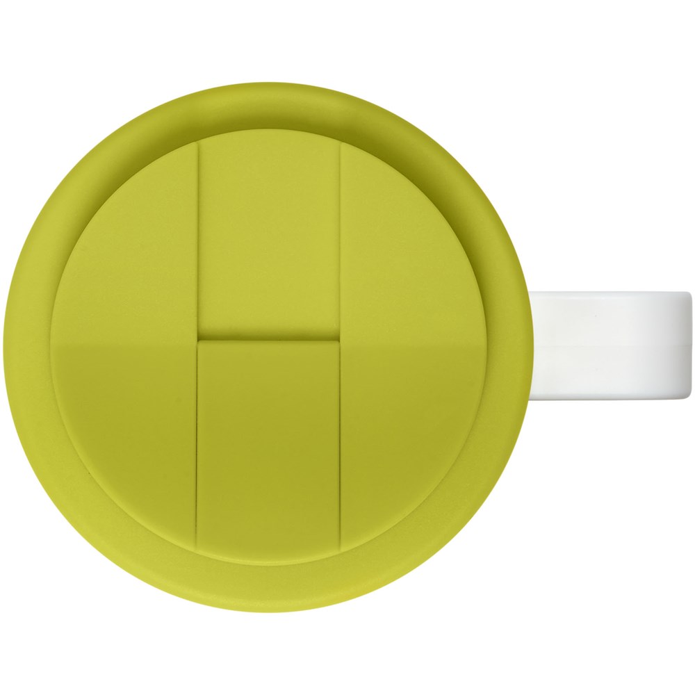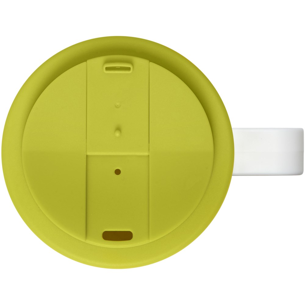 Doppelwandiger Isolierbecher mit aufschraubbarem, auslaufsicherem Deckel. Die äußere Schicht des Bechers ist aus recyceltem Kunststoff hergestellt. Der Becher verfügt über ein vollfarbiges, umlaufendes Design, das an das Produkt angepasst ist – für Strapazierfähigkeit und Haltbarkeit. EN12875-1 konform; spülmaschinen- und mikrowellenfest. Trinköffnung mit Clip verhindert auslaufen und schließt ohne Silikon. Das Fassungsvermögen beträgt 350 ml. Mischen und kombinieren Sie Farben, um Ihren perfekten Becher zu kreieren. Hergestellt in Großbritannien. Verpackt, in einer weißen Geschenkschachtel. BPA-frei. EN12875-1-konform, spülmaschinen- und mikrowellengeeignet.