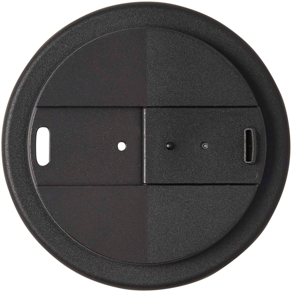 Doppelwandiger Isolierbecher mit drehbarem, auslaufsicherem Deckel und einem vollfarbigen Rundum-Design. Hergestellt aus insgesamt 70 % recyceltem Material (recycelter Becher und schwarze Innenschicht) und mit einem Standard-PP-Deckel. Der Becher ist vollständig recycelbar, spülmaschinenfest und mikrowellengeeignet. 350 ml Fassungsvermögen und BPA-frei. Verpackt in einem kompostierbaren Beutel. Hergestellt in UK.