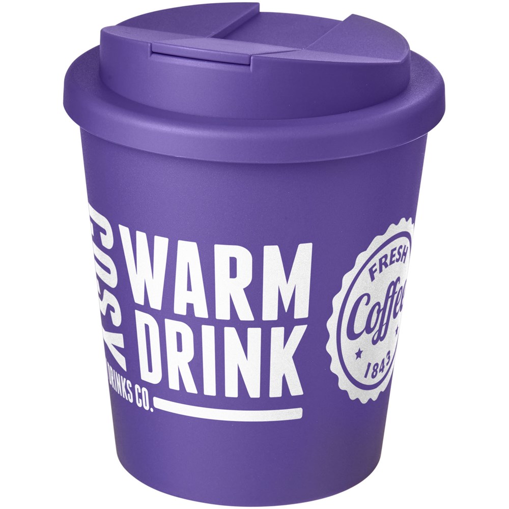 Kompakter, doppelwandiger Isolierbecher mit auslaufsicherem Schraubverschluss. Trinköffnung mit Clip verhindert auslaufen und schließt ohne Silikon. Passt unter die meisten Kaffeemaschinen. Das Fassungsvermögen beträgt 250 ml. Mischen und kombinieren Sie Farben, um Ihren perfekten Becher zu kreieren. Hergestellt in Großbritannien. EN12875-1-konform, spülmaschinen- und mikrowellengeeignet. Verpackt in einem recycelten PE-Kunststoffbeutel.