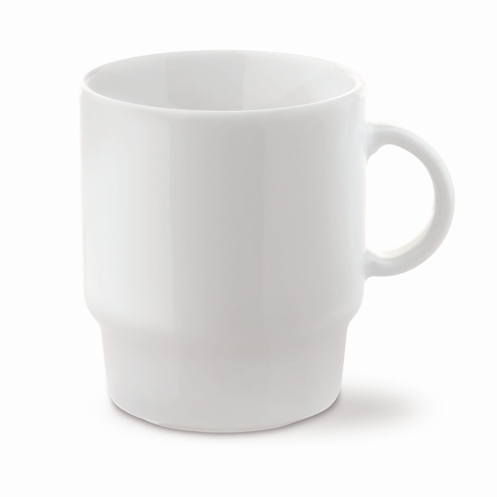Kaffeebecher aus der Toppoint Design Serie 'Satellite'. Der Becher wird in Europa aus hochwertigem Porzellan gefertigt. Vorteil, die Tasse ist stapelbar und bietet eine große Druckfläche.