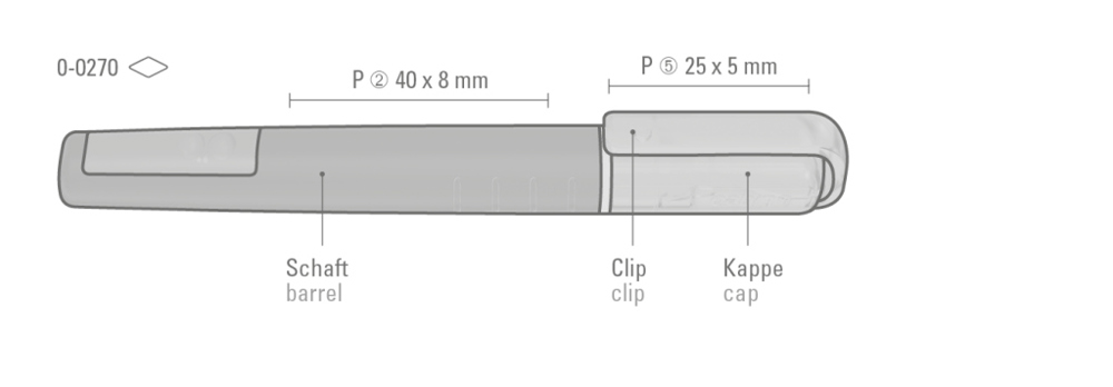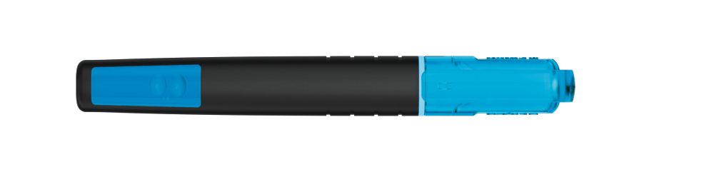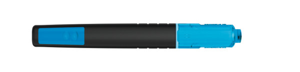 Flüssig-Textmarker in Stiftform mit schwarzem Schaft und transparenter Kappe in Schreibfarbe. mehr