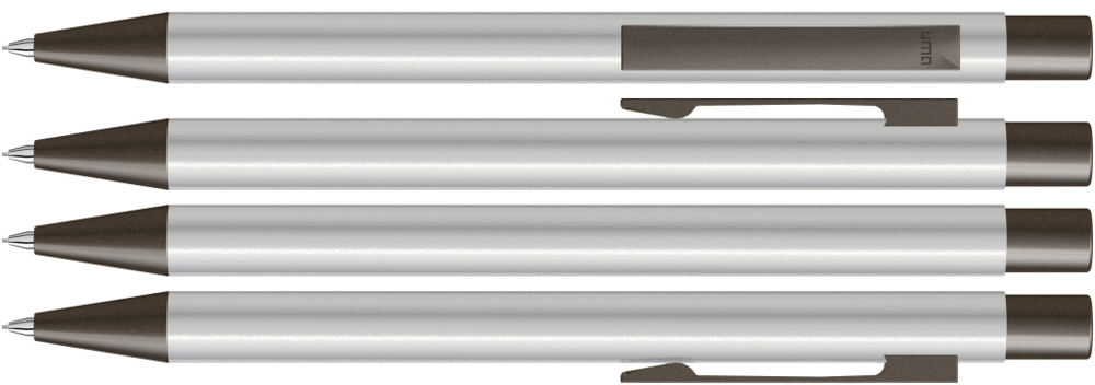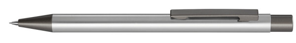 Metall-Druckbleistift (0,7mm) mit glänzendem Gehäuse. Metallclip, Metallspitze und Drücker GUN metallic. Radiergummi im Drücker.