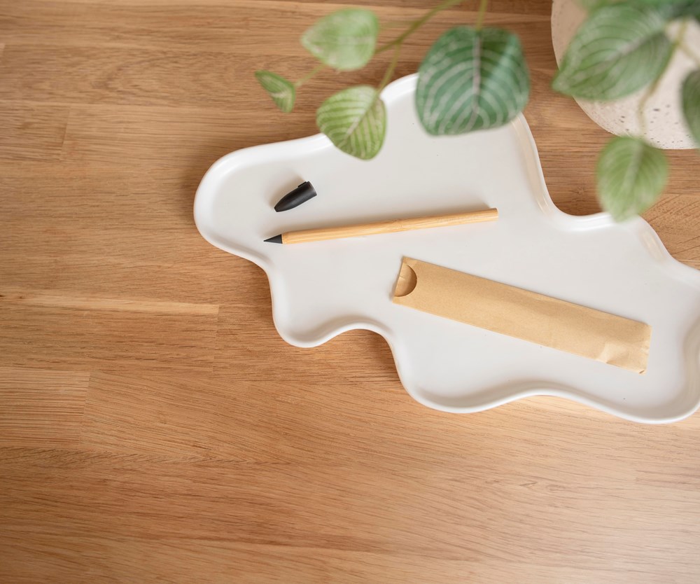 Endlos-Bamboo-Bleistift. Durch die Metall- und Graphitspitze ersetzt er Hunderte von Bleistiften. Mit Deckel aus recyceltem PP-Kunststoff. Einzeln verpackt in brauner Papierhülle.