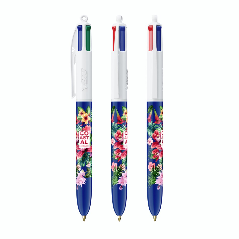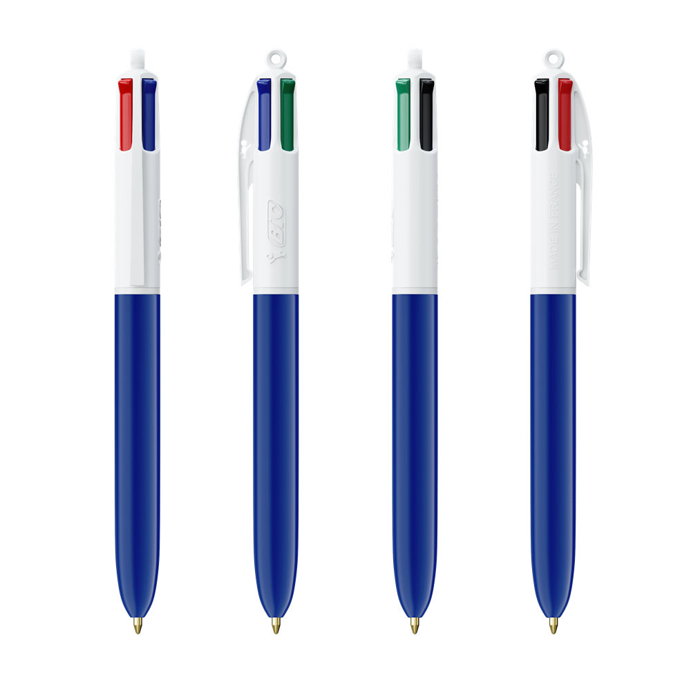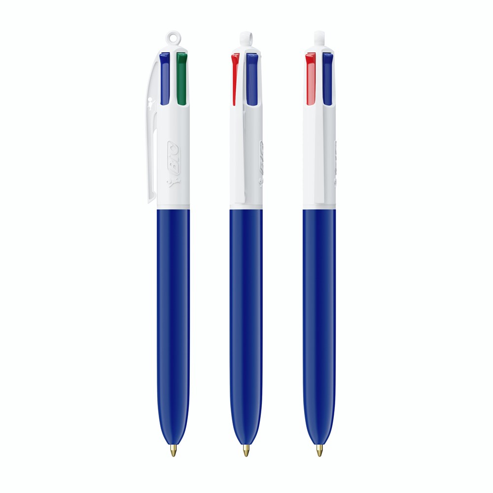 Einfach, einfallsreich, zuverlässig und legendär. 4 verschiedene Tintenfarben in einem Kugelschreiber: blau, schwarz, rot und grün! Eine Schreibikone, die immer in Mode bleibt. Vollfarbdruck in höchster Qualität - mit BritePix Digital. Die BIC® 4 Colours® Kugelschreiber haben eine durchschnittliche Schreiblänge von 8.000 m (SGS-Tests - durchschnittliche Schreiblänge für blaue, schwarze, rote und grüne Tinte). Unser legendärer BIC® 4 Colours® ist jetzt nachhaltiger, mit 13 % weniger Kunststoff im oberen Teil!