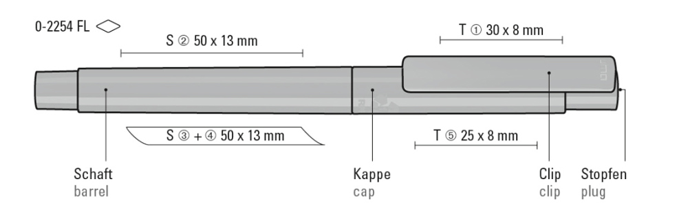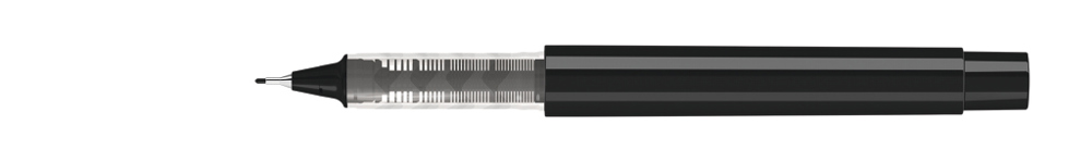 Fineliner mit Gehäuse aus recyceltem PET-Material in gedeckt glänzend weiß oder schwarz. Stopfen in den 12 möglichen Schreibfarben.