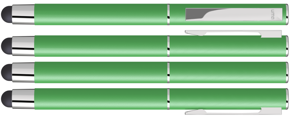 Metall-Rollerball mit mattem Gehäuse. Metallclip und Zierring silber glänzend, Griffzone schwarz. Gummiertes Schaftende für die Touchscreensteuerung.