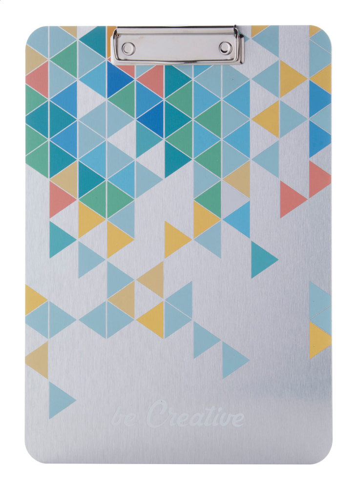 Individuelles A4 Klemmbrett aus Aluminiumverbund mit vollfarbiger Bedruckung auf der Vorderseite. Mindestmenge: 25 Stk.