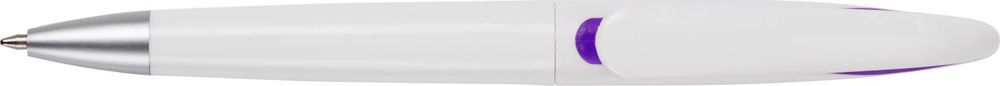 Drehkugelschreiber aus Kunststoff, weiß mit farbigen Akzenten und schwarzer Mine. mehr