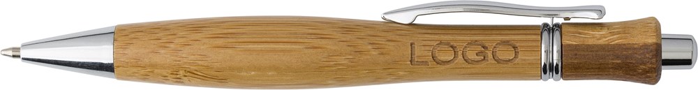 Kugelschreiber aus Bambus, mit Metall-Clip, Drücker und Spitze, schwarze Mine. mehr