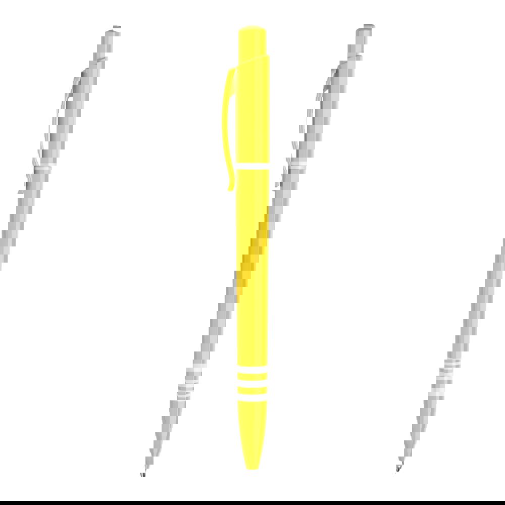 Der Hardcolour Kugelschreiber Tropic-Color hat eine große Druckfläche auf dem Clip und dem Schaft. Mit farbigem Schaft, Drücker und Clip. Der Schaft hat drei farbige Ringe in Weiß. Druckkugelschreiber ausgestattet mit einer blau schreibenden Jumbo-Refill-Mine. Der Stift besteht aus ABS-Kunststoff und wird in Europa hergestellt. Ab einer Abnahmemenge von 5.000 Stück sind eigene Farbkombinationen möglich.