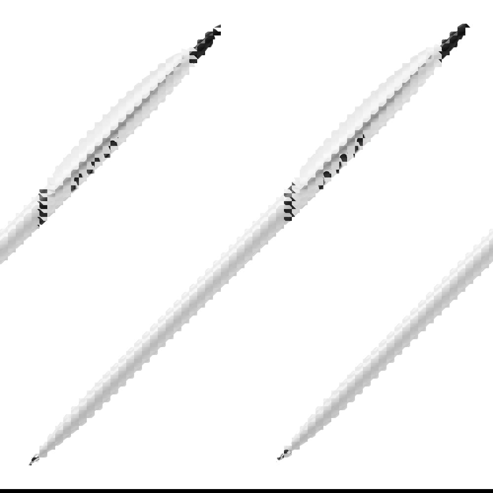 Der Hardcolour Kugelschreiber S30 besitzt ein weißes Gehäuse mit farbigen Details. Druckkugelschreiber ausgestattet mit einer blau schreibenden X20-Refill-Mine. Der Stift besteht aus ABS und wird in Europa hergestellt. Ab einer Abnahmemenge von 5.000 Stück sind eigene Farbkombinationen möglich.