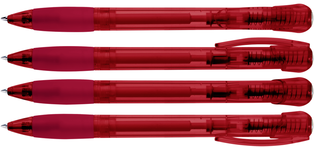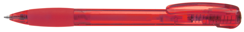 Druckkugelschreiber mit transparent glänzendem Gehäuse, Gummigriffzone und Clipdrücker. Stopfen... mehr