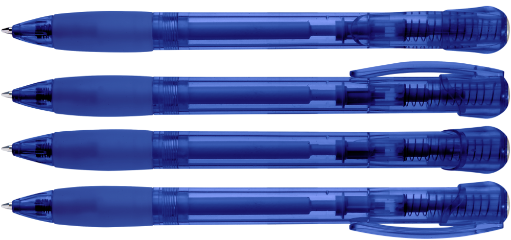 Druckkugelschreiber mit transparent glänzendem Gehäuse, Gummigriffzone und Clipdrücker. Stopfen... mehr