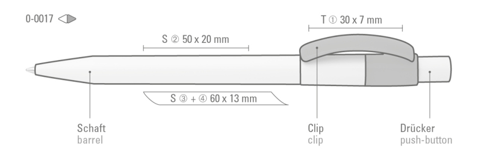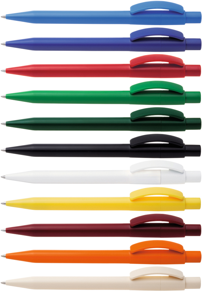 Druckkugelschreiber mit gedeckt glänzendem Gehäuse, Bogenclip und Drücker. mehr