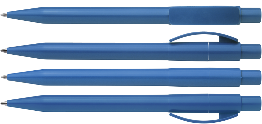 Druckkugelschreiber mit gedeckt glänzendem Gehäuse, Bogenclip und Drücker. mehr