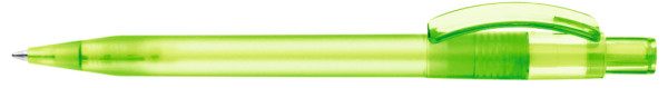 Druckkugelschreiber mit gefrostetem Gehäuse, glänzend transparentem Bogenclip und Drücker. mehr