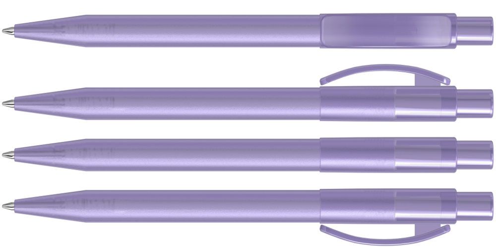 Druckkugelschreiber mit gefrostetem Gehäuse, glänzend transparentem Bogenclip und Drücker. mehr