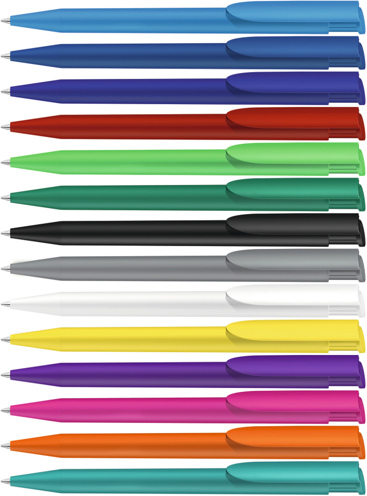 Druckkugelschreiber mit gedeckt mattem Gehäuse und Clipdrücker. mehr