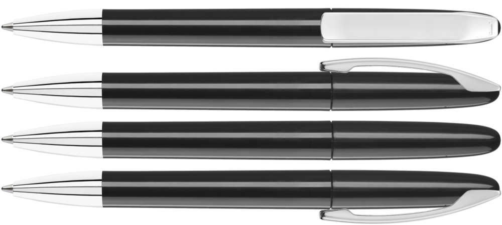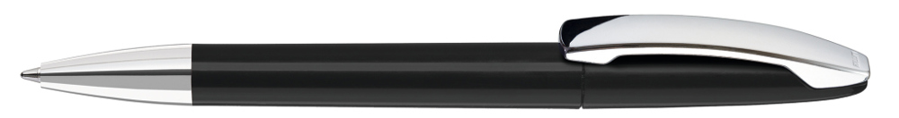 Drehkugelschreiber mit gedeckt glänzendem Gehäuse, Metallclip und Spitze glanzverchromt. mehr