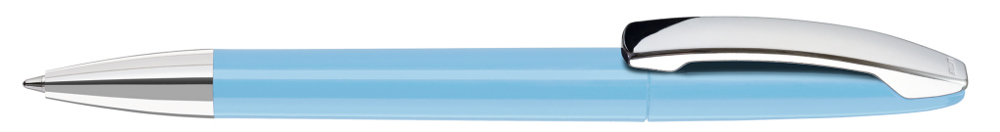Drehkugelschreiber mit gedeckt glänzendem Gehäuse, Metallclip und Spitze glanzverchromt. mehr