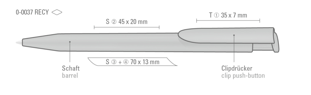 Druckkugelschreiber mit gedeckt mattem Gehäuse und Clipdrücker aus recyceltem Kunststoff. mehr
