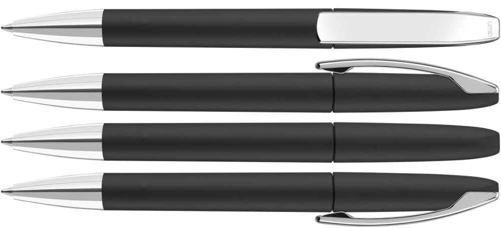 Drehkugelschreiber mit Softtouch-Gehäuse, Metallclip und Spitze glanzverchromt. mehr