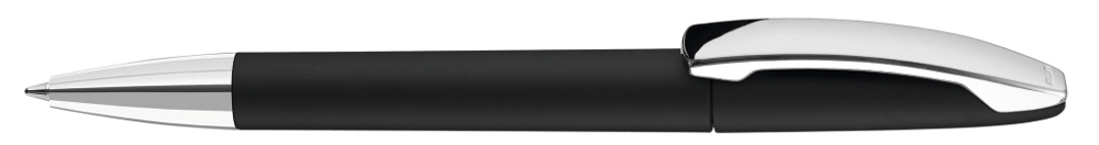 Drehkugelschreiber mit Softtouch-Gehäuse, Metallclip und Spitze glanzverchromt.