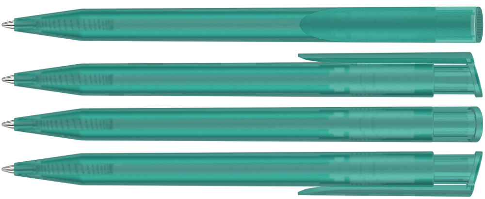 Druckkugelschreiber mit transparent gefrostetem Gehäuse und Clipdrücker. mehr