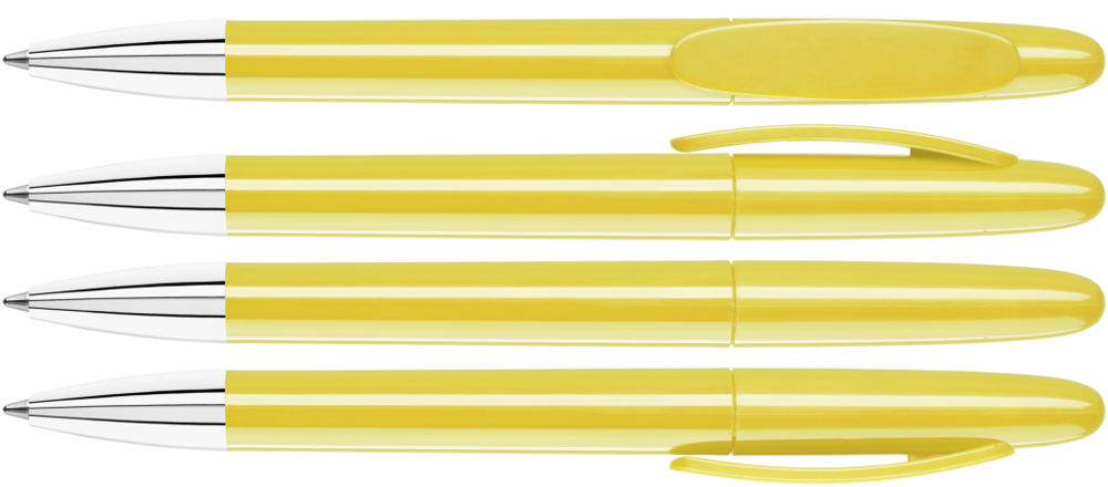 Drehkugelschreiber mit gedeckt glänzendem Gehäuse und Spitze glanzverchromt.