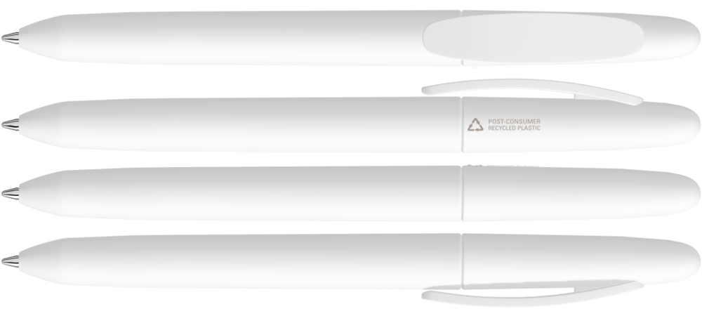Drehkugelschreiber mit gedeckt mattem Gehäuse aus 100% recyceltem Post-Consumer-Kunststoff.