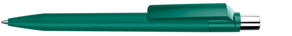 Druckkugelschreiber mit Softtouch-Schaft, gedeckt glänzendem Clip, silber glänzendem Drücker und farbigem Stopfen.
