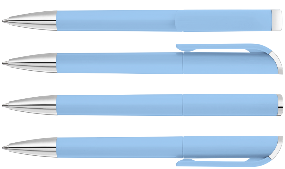 Drehkugelschreiber mit gedeckt glänzendem Gehäuse, Stopfen und Spitze glanzverchromt. mehr