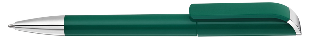 Drehkugelschreiber mit gedeckt glänzendem Gehäuse, Stopfen und Spitze glanzverchromt.