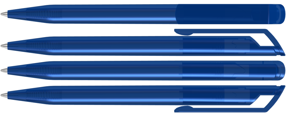 Drehkugelschreiber mit transparent glänzendem Gehäuse.