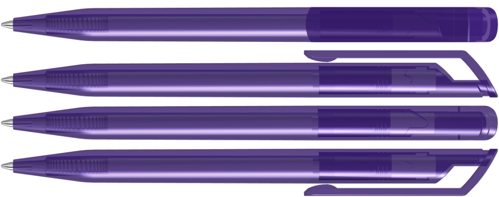 Drehkugelschreiber mit transparent glänzendem Gehäuse.