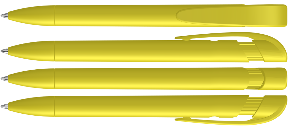 Druckkugelschreiber mit gedeckt mattem Gehäuse, breitem Bogenclipdrücker und Spitze. mehr