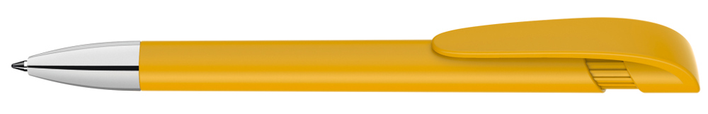 Druckkugelschreiber mit gedeckt mattem Gehäuse, breitem Bogenclipdrücker und silberner Spitze glanzverchromt.