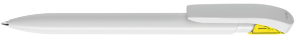 Druckkugelschreiber mit gedeckt glänzendem Gehäuse in uni weiß oder schwarz und farbig... mehr