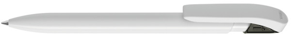 Druckkugelschreiber mit gedeckt glänzendem Gehäuse in uni weiß oder schwarz und farbig... mehr