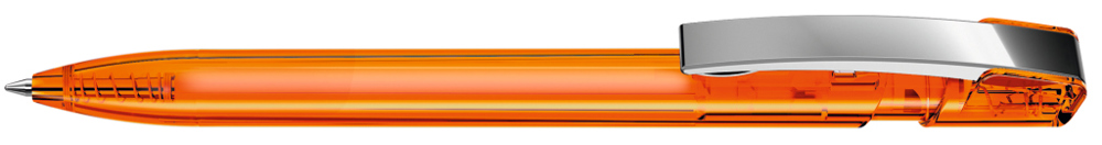 Druckkugelschreiber mit transparent glänzendem Gehäuse und flexiblem Metallclip glanzverchromt. mehr