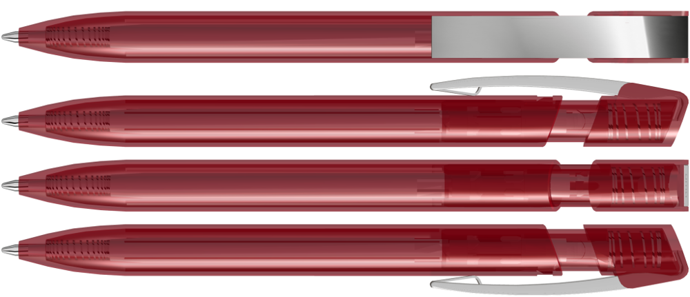 Druckkugelschreiber mit transparent glänzendem Gehäuse und flexiblem Metallclip glanzverchromt. mehr