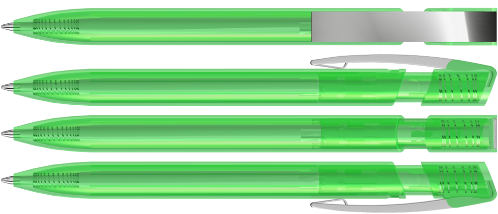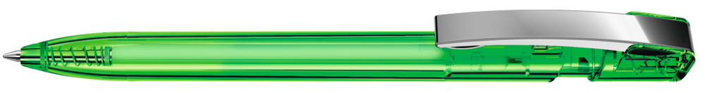 Druckkugelschreiber mit transparent glänzendem Gehäuse und flexiblem Metallclip glanzverchromt. mehr