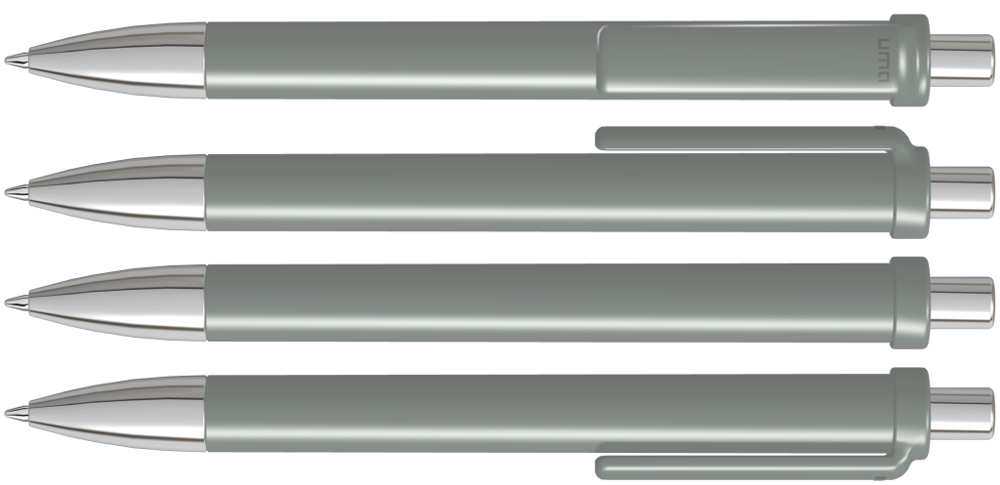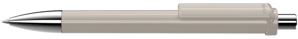 Druckkugelschreiber mit gedeckt glänzendem Schaft und Clip, Metallspitze und Metalldrücker glanzverchromt.
