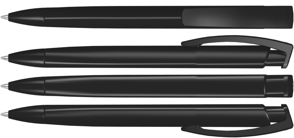 Druckkugelschreiber mit gedeckt glänzendem Dreikantgehäuse.