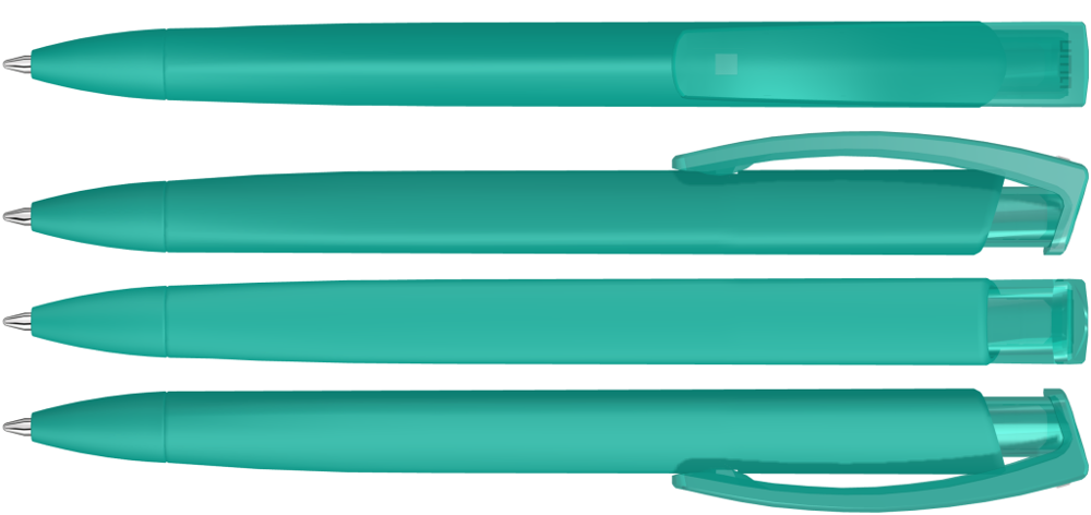 Druckkugelschreiber mit gummiertem Dreikantgehäuse und transparent glänzendem Clip. mehr