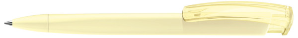 Druckkugelschreiber mit gummiertem Dreikantgehäuse und transparent glänzendem Clip. mehr