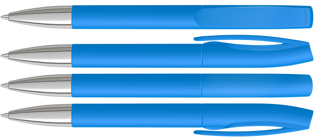 Drehkugelschreiber mit matt gedecktem Gehäuse und silberner Spitze glanzverchromt.